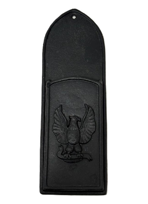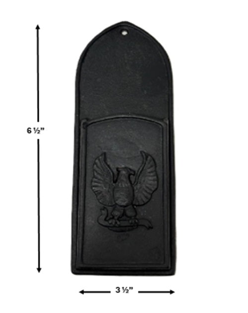 Enhance your fireplace decor with our Cast Iron Bald Eagle wall pocket Fireplace Match Holder. Made from sturdy cast iron, it features a striking bald eagle design that adds a touch of nature to your home. Keep your matches close by and easily accessible while adding a statement piece to your fireplace. Size 3 ½” x 10 ½”
