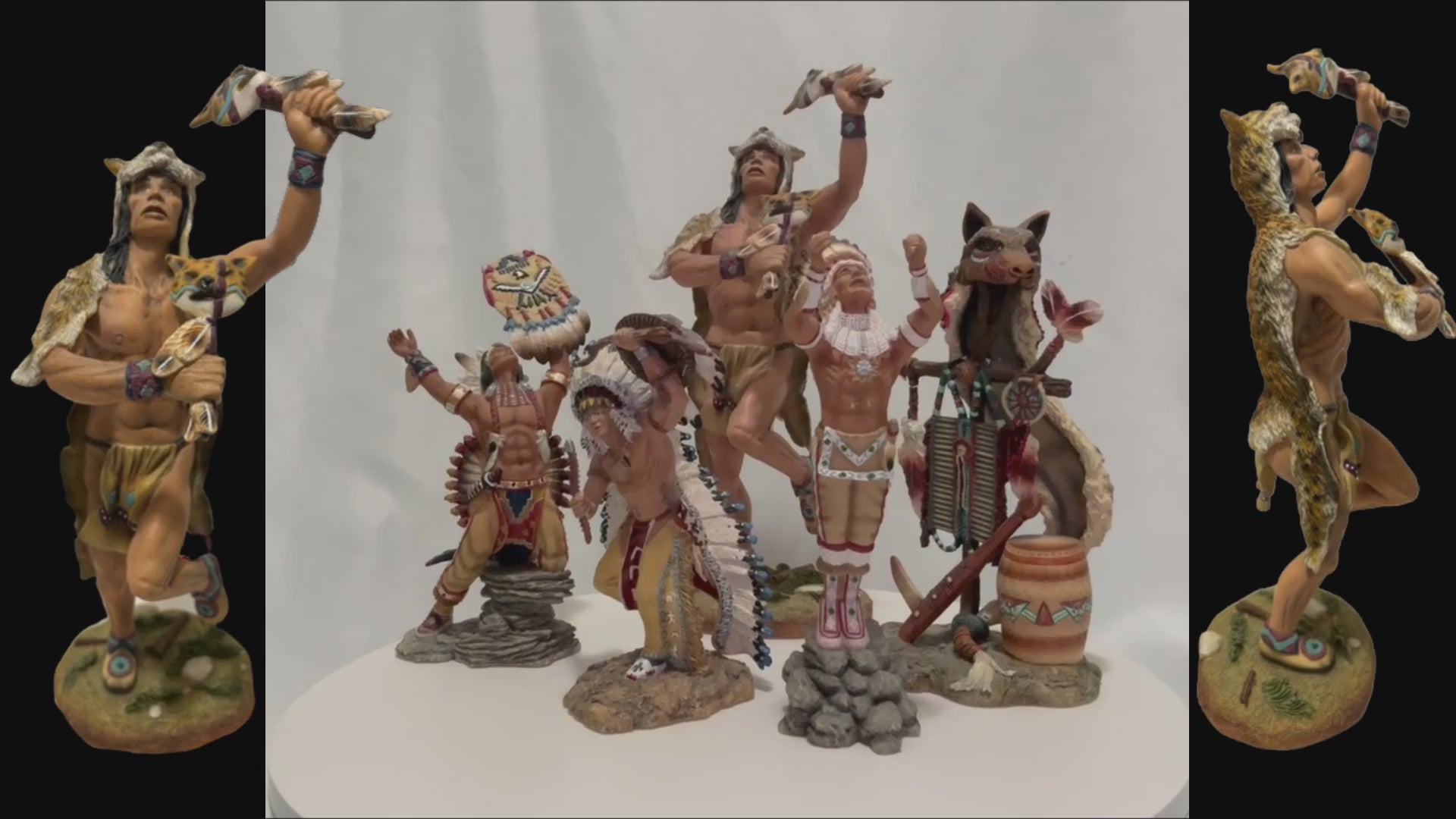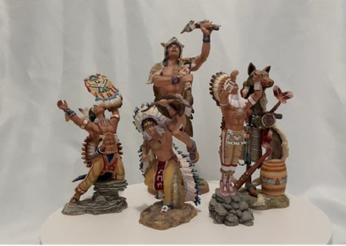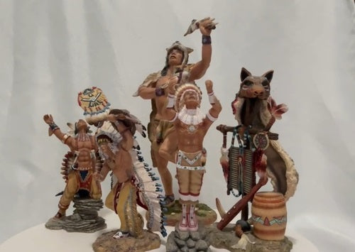 Explore the richness of Native American heritage with Hamilton Collection Indian Figures, a set of 5 meticulously crafted figurines. Each piece captures the intricacies of traditional attire and designs, adding a touch of history and art to any room. Featuring the following figures: Spirit of the Mask - 7 1/2" Shield of Courage - 7" Power of the Wolf - 7" Protector of Dreams - 6 1/2" Great Feather Warrior - 5 1/2", this collection is a must-have for collectors and enthusiasts.