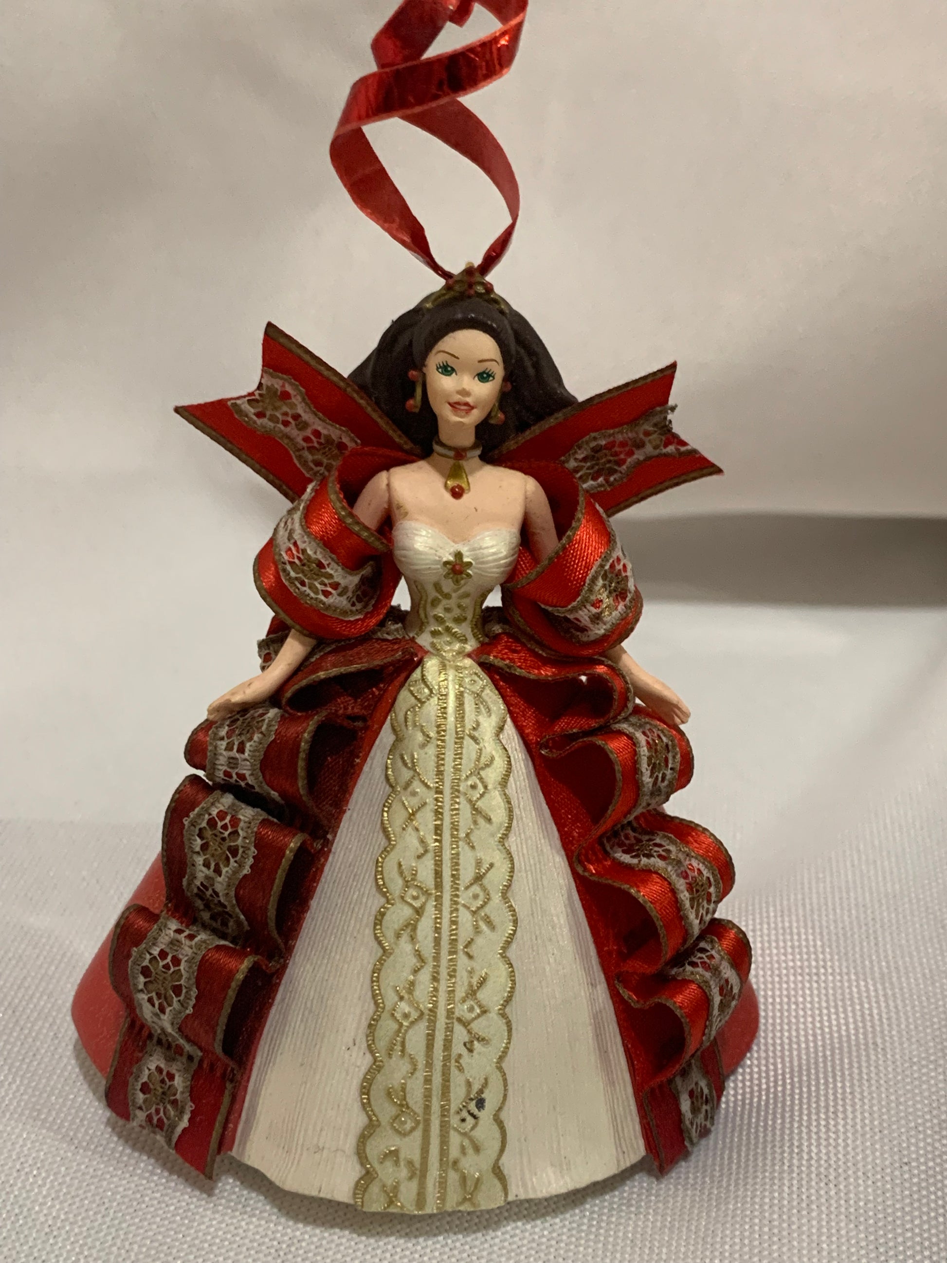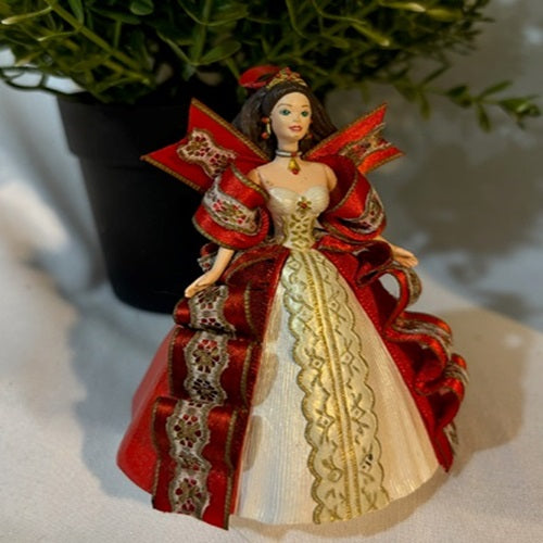 Celebrate the holiday season with the iconic pre-loved Hallmark Ornament 1997 Holiday Barbie. This beautifully crafted ornament features the beloved Barbie doll in a festive red gown, adding a touch of nostalgia to your tree. A must-have for any Barbie collector or fan. Limited edition. Size 3 ½” x 3”
