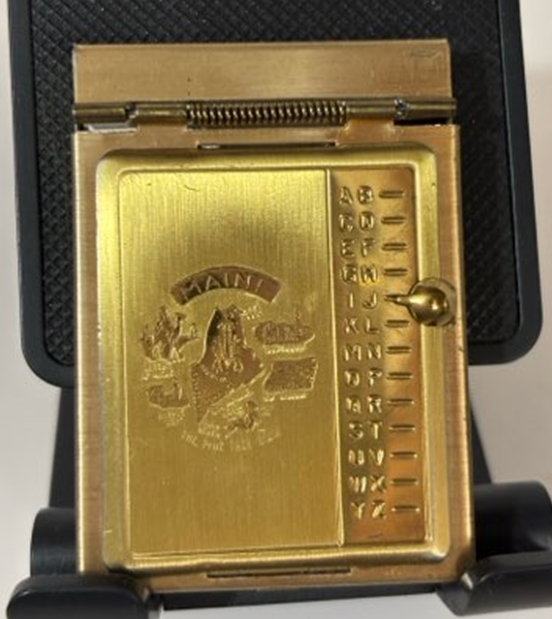 This Mini Gold-Tone Pop up Phone Book is a must-have for any vintage collector. With its unique pop-up design, it adds a touch of nostalgia to your phone book organization. Made with high-quality materials, it is a reliable and durable addition to your collection. Perfect for showcasing your love for the State of Maine. Size 2 ½” X 1 ¾”