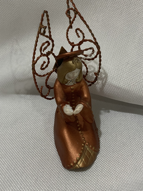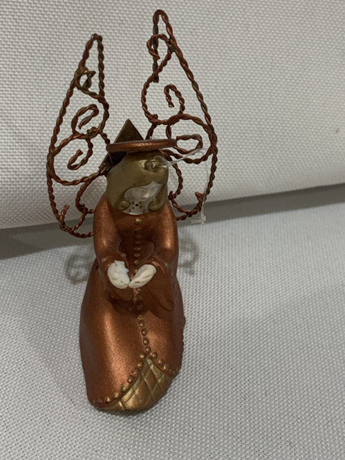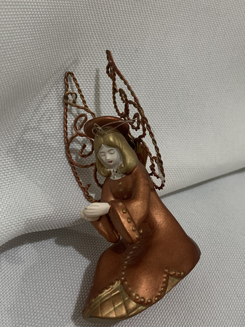 The Ornament Copper Ceramic Angel is a durable and beautifully crafted piece perfect for holiday decorations. Made with long-lasting copper ceramic material, this ornament is an elegant addition to your Christmas tree or mantel. With an intricate design, it will add a touch of charm and sophistication to your home. Measures 2 ¾” in height.