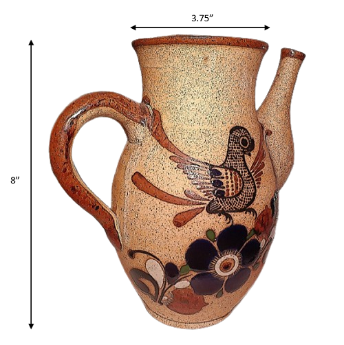 Enhance your home decor with this beautiful Pottery Pitcher, handcrafted in Mexico. The stunning blue floral design and hand-painted bird add a charming touch to this unique piece. Made with high-quality materials, this pitcher is both beautiful and functional. Bring a touch of Mexican culture to your home.