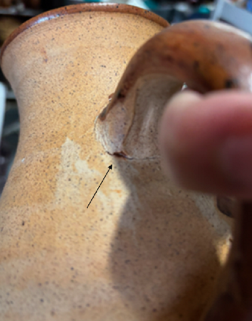 Pottery Pitcher Vase Bird floral blue Tan
