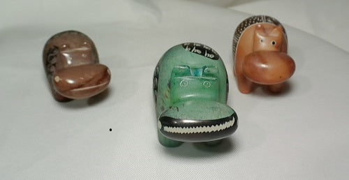 Experience the fascinating and exquisite craftsmanship of our Soap stone Hippo Figurines. Made from high-quality soapstone, these figurines are intricately carved and detailed, making them a unique addition to any decor. With their smooth texture and stunning designs, they bring a touch of nature into your home. Sizes 1 ½” & 2"